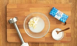Per realizzare le castagnole al forno dovete prima di tutto mettere nel mixer il Burro Santa Lucia ridotto a pezzetti insieme al latte e allo zucchero. Dopodiché, frullate il tutto per un paio di minuti.