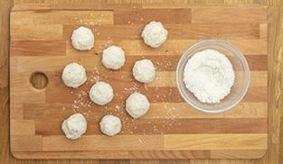 A questo punto, sciogliete a bagnomaria il Burro Santa Lucia, poi aggiungete le due parti di zucchero e mescolate per ottenere un composto omogeneo. Una volta amalgamato il tutto, trasferitelo nella ciotola in cui avevate mescolato i biscotti secchi e la farina di cocco, unite la Ricotta Santa Lucia e continuate a mescolare. Dopodiché, cominciate a impastare con le mani per ottenere un composto compatto e dalla consistenza un po’ appiccicosa.