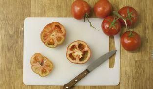 Per prima cosa lava il pomodoro e privalo delle parti non edibili. Taglia via un quarto di pomodoro in modo da tenerlo quasi tutto interno ma senza la sommità dove era attaccato al ramo.
