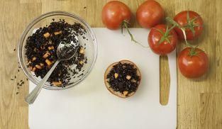 Riempi quindi il pomodoro preparato in precedenza con il composto di riso venere e verdure.
