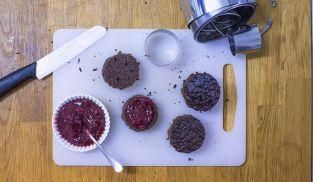 Tortine al cioccolato e marmellata di lamponi